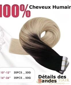 - Entretien : Pour prolonger la durée de vie de vos extensions, lavez-les avec un shampooing doux et laissez-les sécher à l’air libre. Évitez les produits contenant des sulfates ou de l’alcool, car ils risqueraient de détériorer les bandes adhésives.
